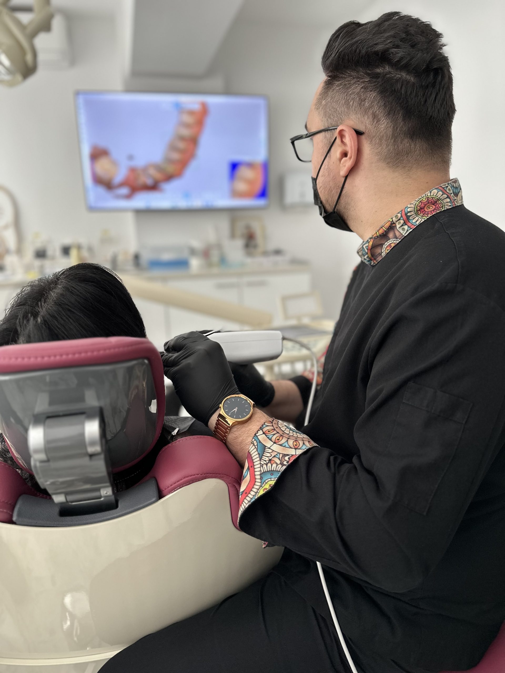 Folosim un scanner intraoral care filmează dinții și creează o copie digitală a gurii tale în câteva secunde. Eliminăm complet disconfortul cauzat de pastele de amprentă tradiționale și obținem o precizie perfectă pentru viitoarea ta lucrare.